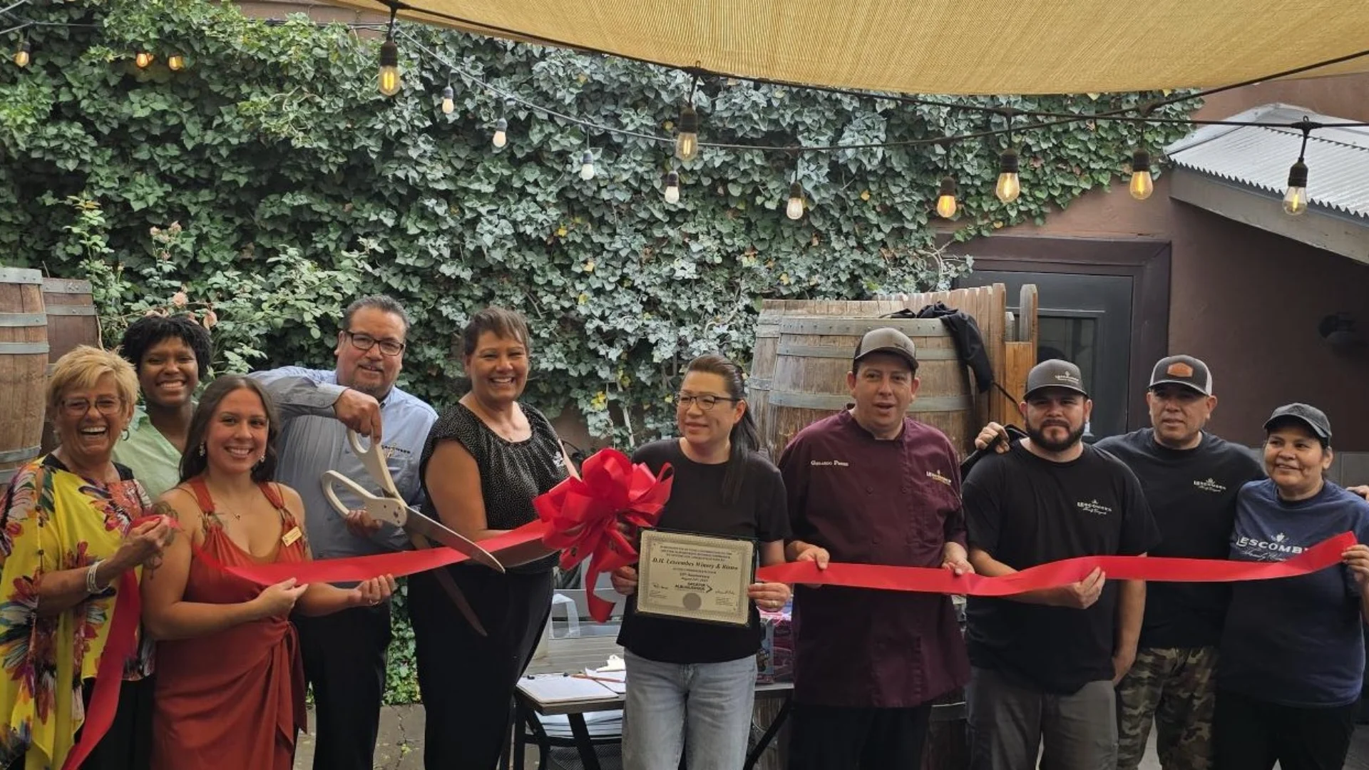 D.H. Lescombes Winery & Bistro recently marked its 20th anniversary in Old Town with a ribbon-cutting ceremony on August 24, supported by the Greater Albuquerque Chamber of Commerce.